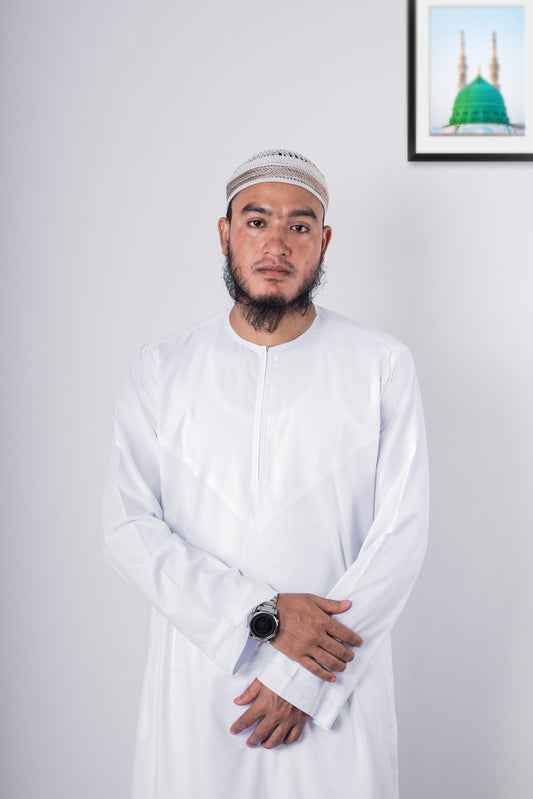 White Emirati thobe | Thobe for men | Modest Crew Neck jubba